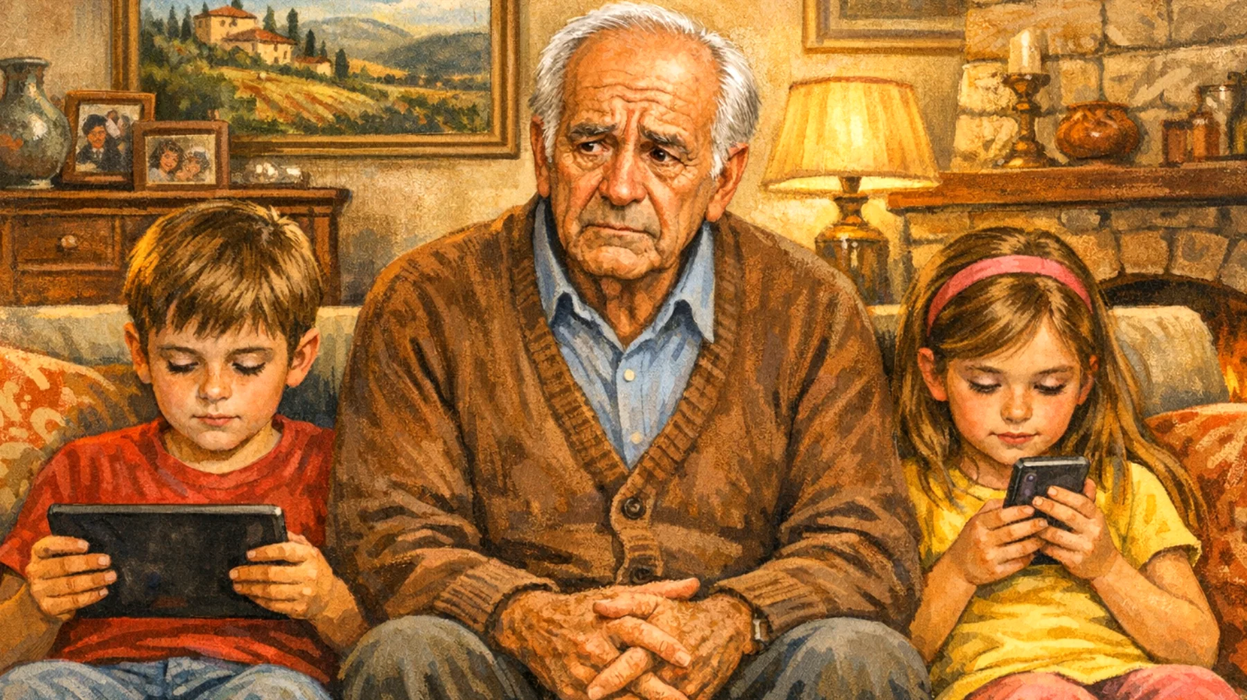 Il sabato pomeriggio da nonno Giulio si ripete sempre uguale: i nipotini arrivano carichi di energia, lui prepara la merenda, ma nel giro di venti minuti entrambi sono già ipnotizzati dallo schermo del tablet. Quando prova a proporre un gioco da tavolo o una passeggiata, riceve sguardi distratti e risposte monosillabiche. La sera, quando i genitori vengono a riprenderli, si sente quasi in colpa, come se avesse fallito nel suo ruolo.
